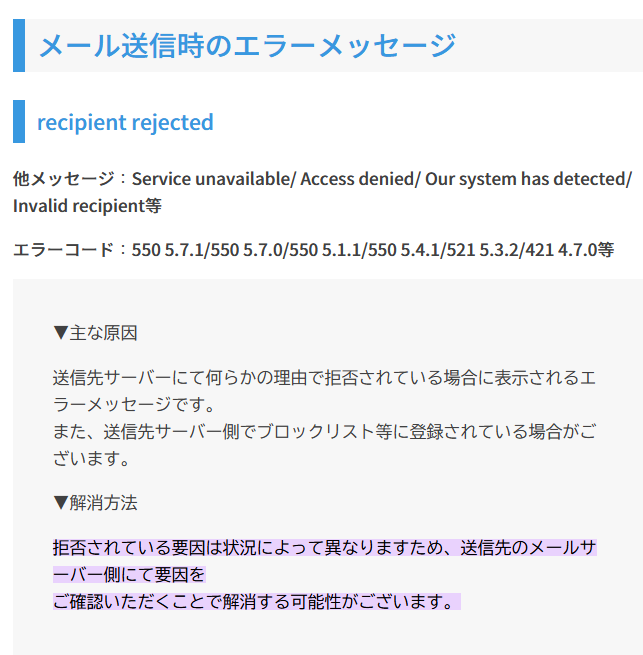Unfortunately, messages from [私のIPアドレス] weren't sent. Please contact