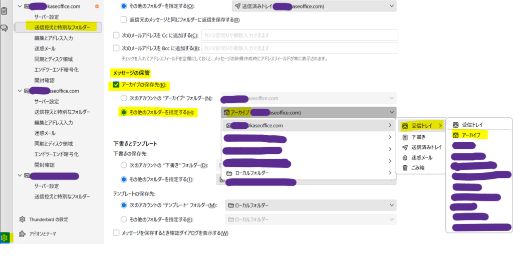 追記4 【Thunderbird】アーカイブしたメールが消えた!(アーカイブ設定変更)