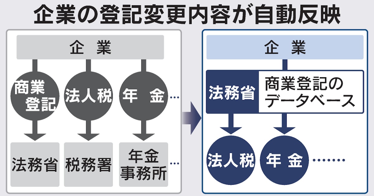 企業の公的情報、登記で一括変更 年500万件手続き省略 - 日本経済新聞 デジタル庁は企業が商号や住所を変える際に商業登記を書き換えるだけで税や営業許可といった各省庁が持つ登録内容を一括で変更できるようにする。年間で少なくとも500万件...